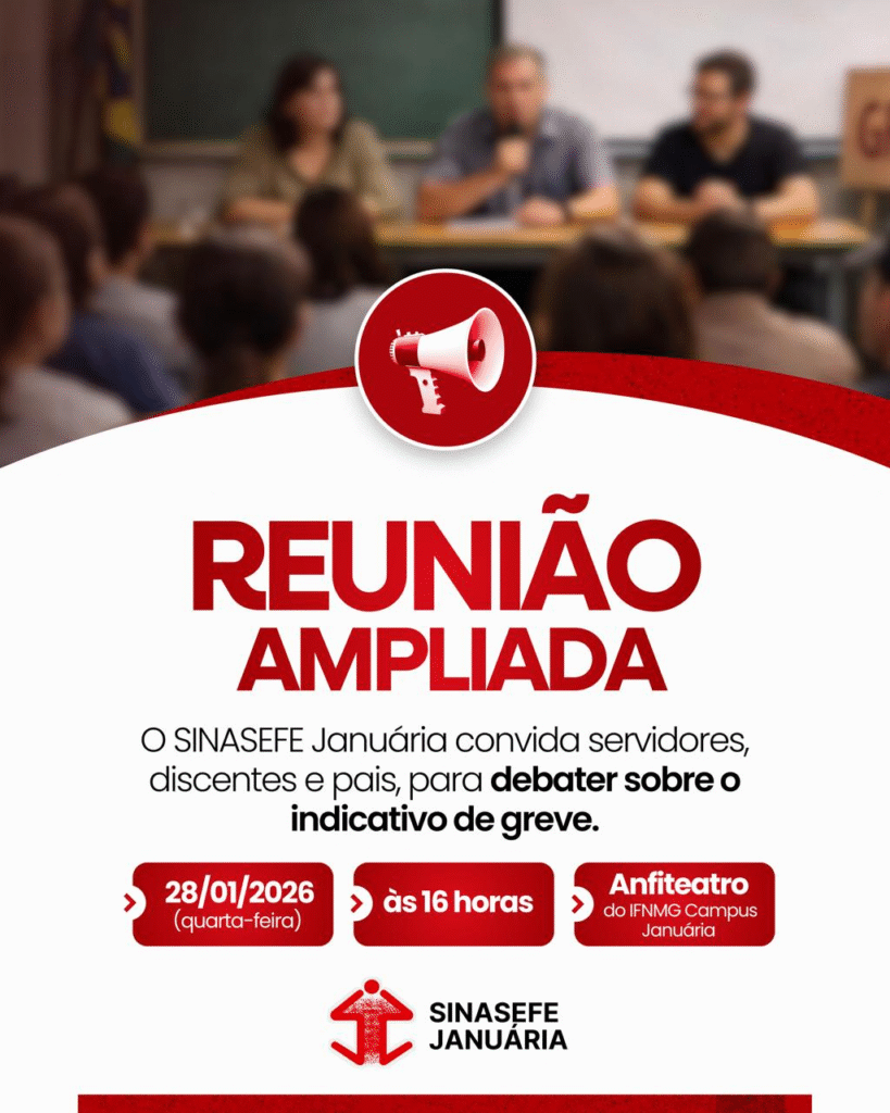 O SINASEFE Januária convida servidores, estudantes e pais para participarem de uma reunião ampliada com o objetivo de debater o indicativo de greve.